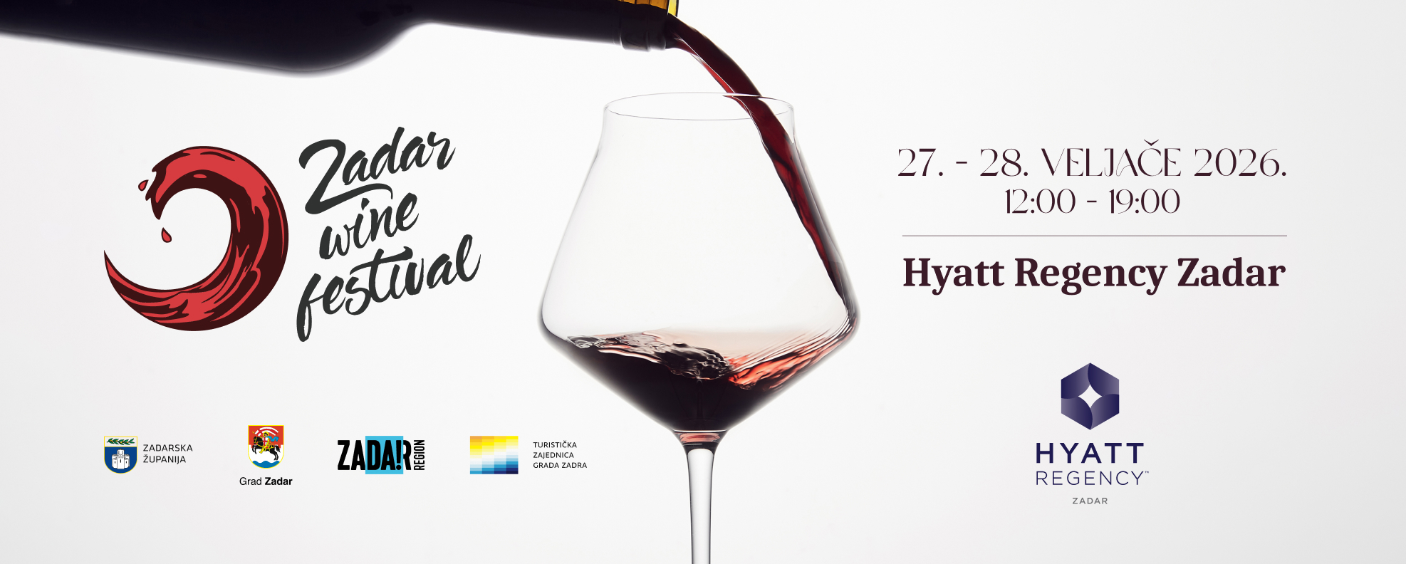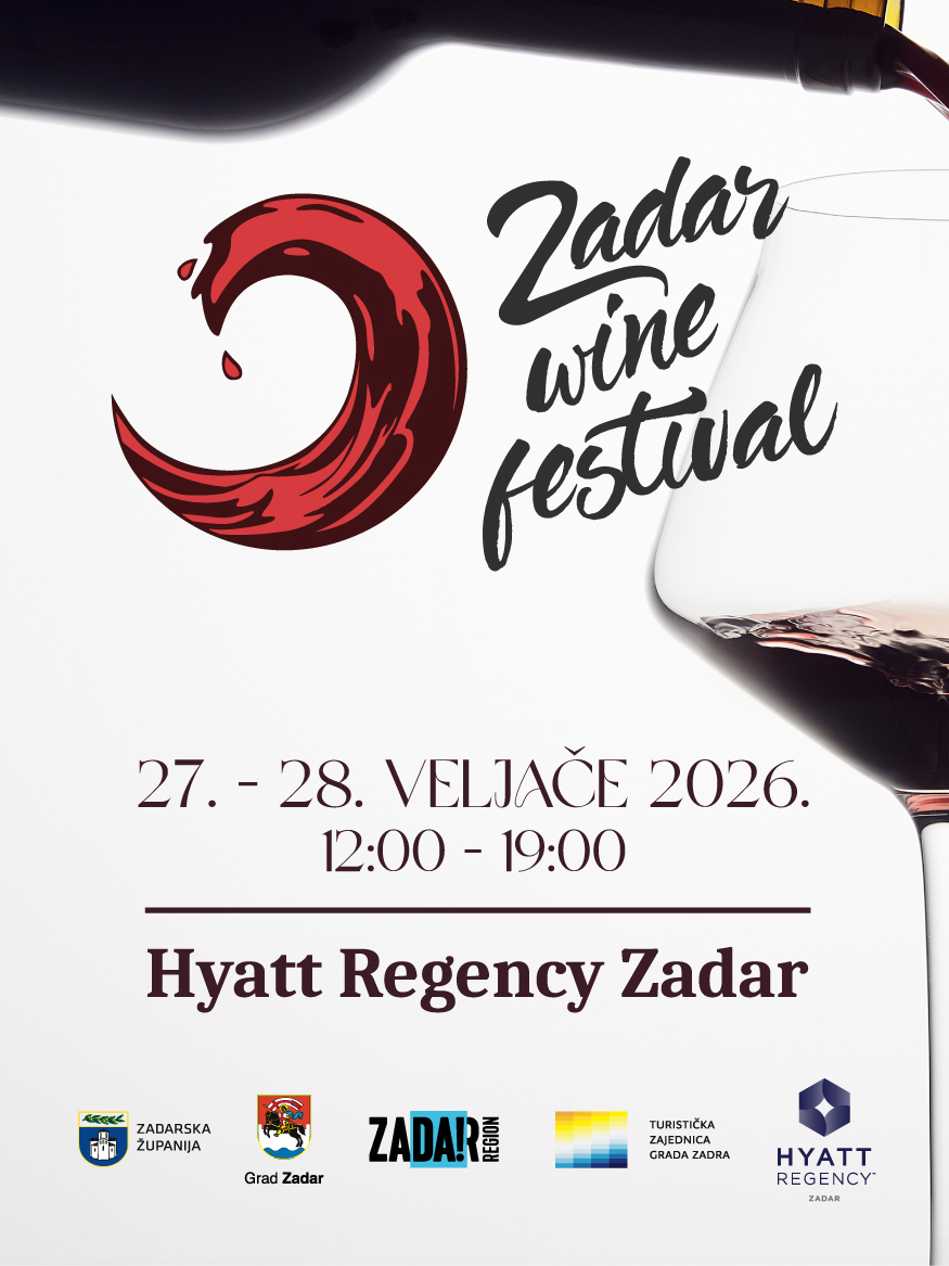 Sa zadovoljstvom najavljujemo ekskluzivno izdanje Zadar Wine Festival 2026. Festival će se održati u petak 27. i subotu 28. veljače od 12:00 do 19:00 sati u novootvorenom hotelu Hyatt Regency Zadar.